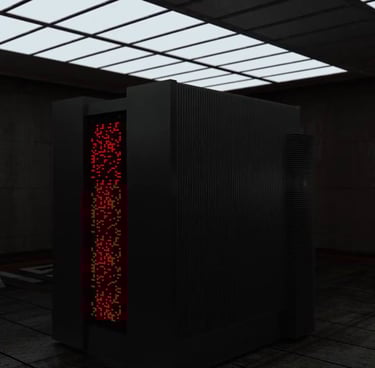 Our products consist of two computers that we call the Sanctum (on the left) and the Vantalisk (on the right). These computers, intended primarily for use in data centers. The sanctum consists of an array of microprocessors submerged in a hydro-electric gel polymer used to both cool and power them. The Vantalisk is made the same but with CPU units in place of the microprocessors.