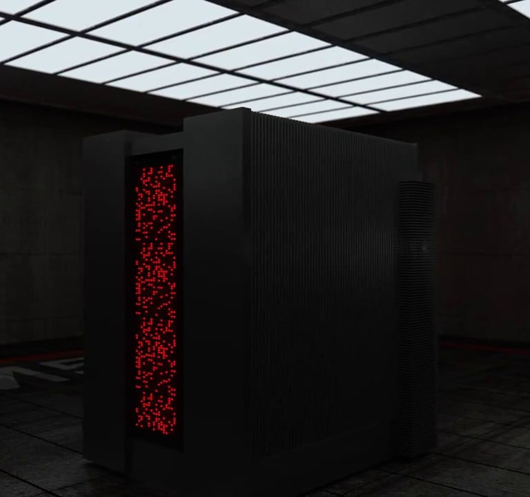 当社の設計は、シンキングマシンズ社のCM-5(右図)から大きな影響を受けています。CM-5は、16枚の回路基板上にマイクロプロセッサのアレイを配置した並列コンピューティング設計を採用していました。ここから、マイクロプロセッサアレイを使用するというアイデアが生まれました。CM-5もまたAIへの活用を目的としており、このことから、サンクタムが自己改善を行うAIを実行するという構想が派生しました。
